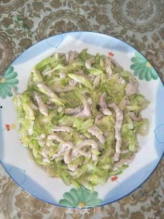 4. 放入腌制好的肉丝,快速翻炒至变色。